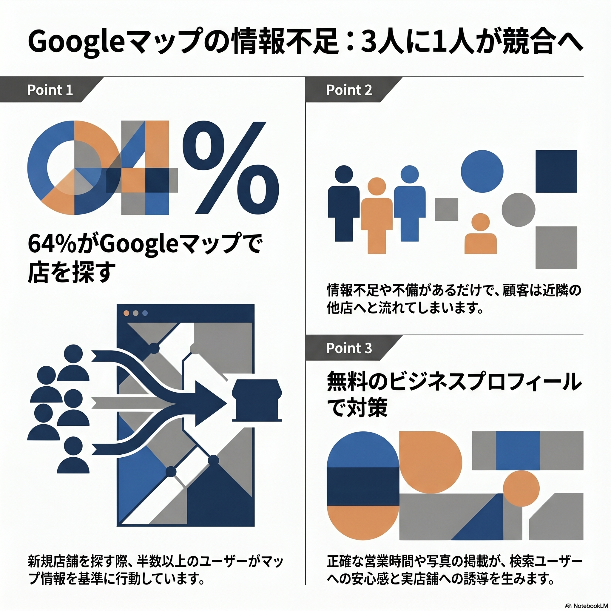 Googleマップの情報不足、3人に1人が競合店舗へ流れる
